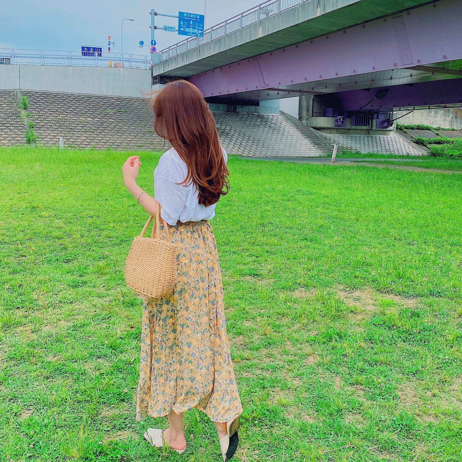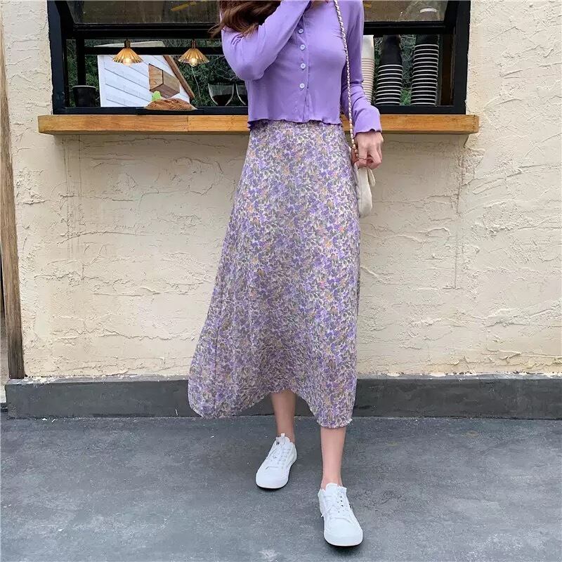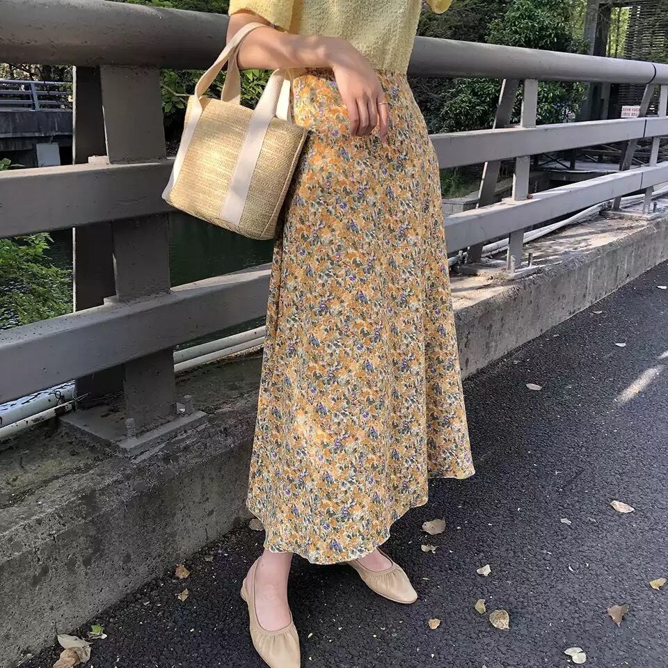 《即納》シフォンフラワーAラインスカート 《韓国ファッション オルチャン》