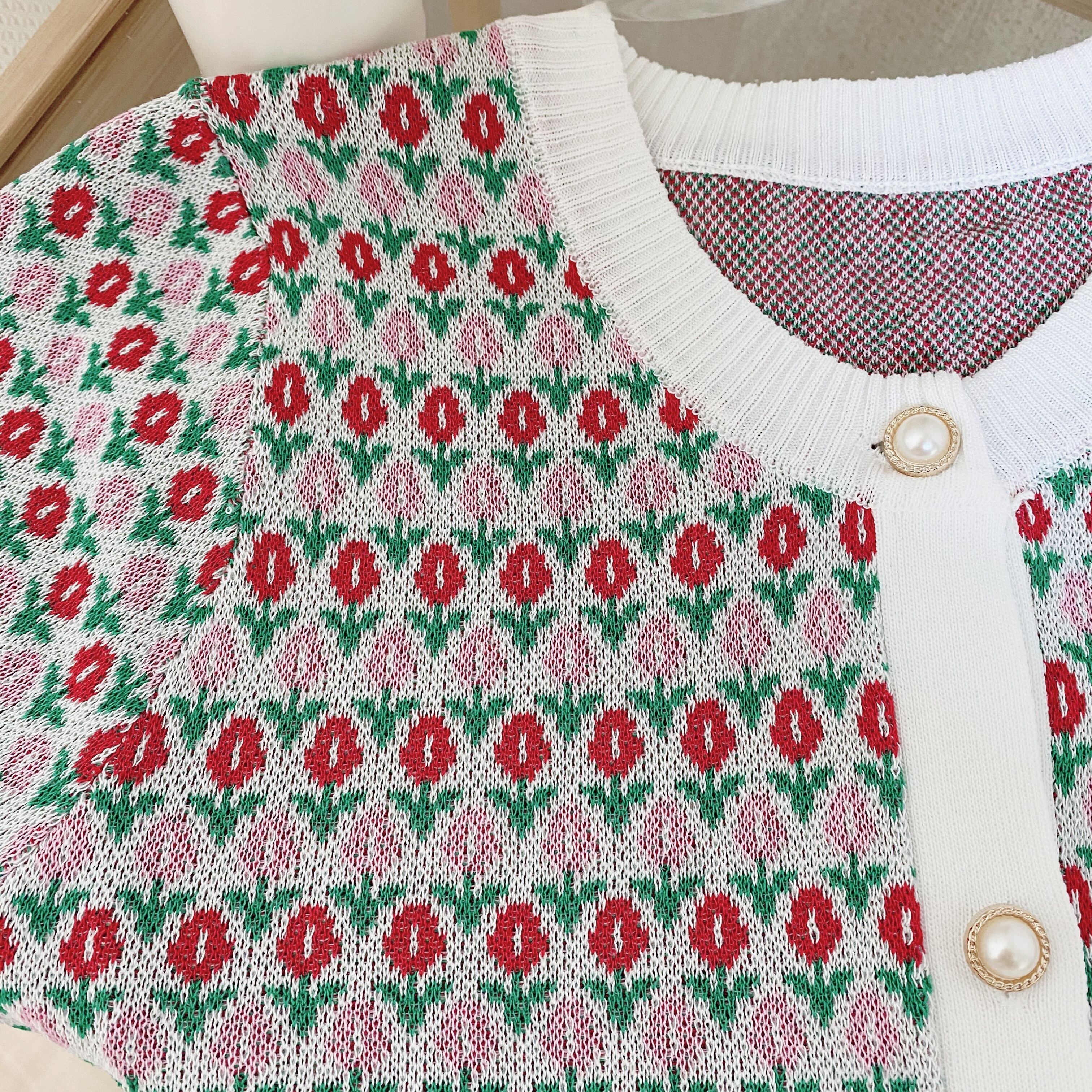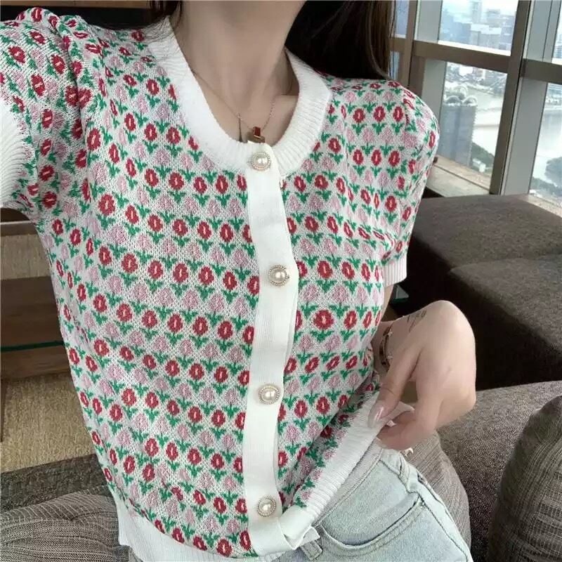 《即納》フラワーニットトップス(半袖) 《韓国ファッション オルチャン》