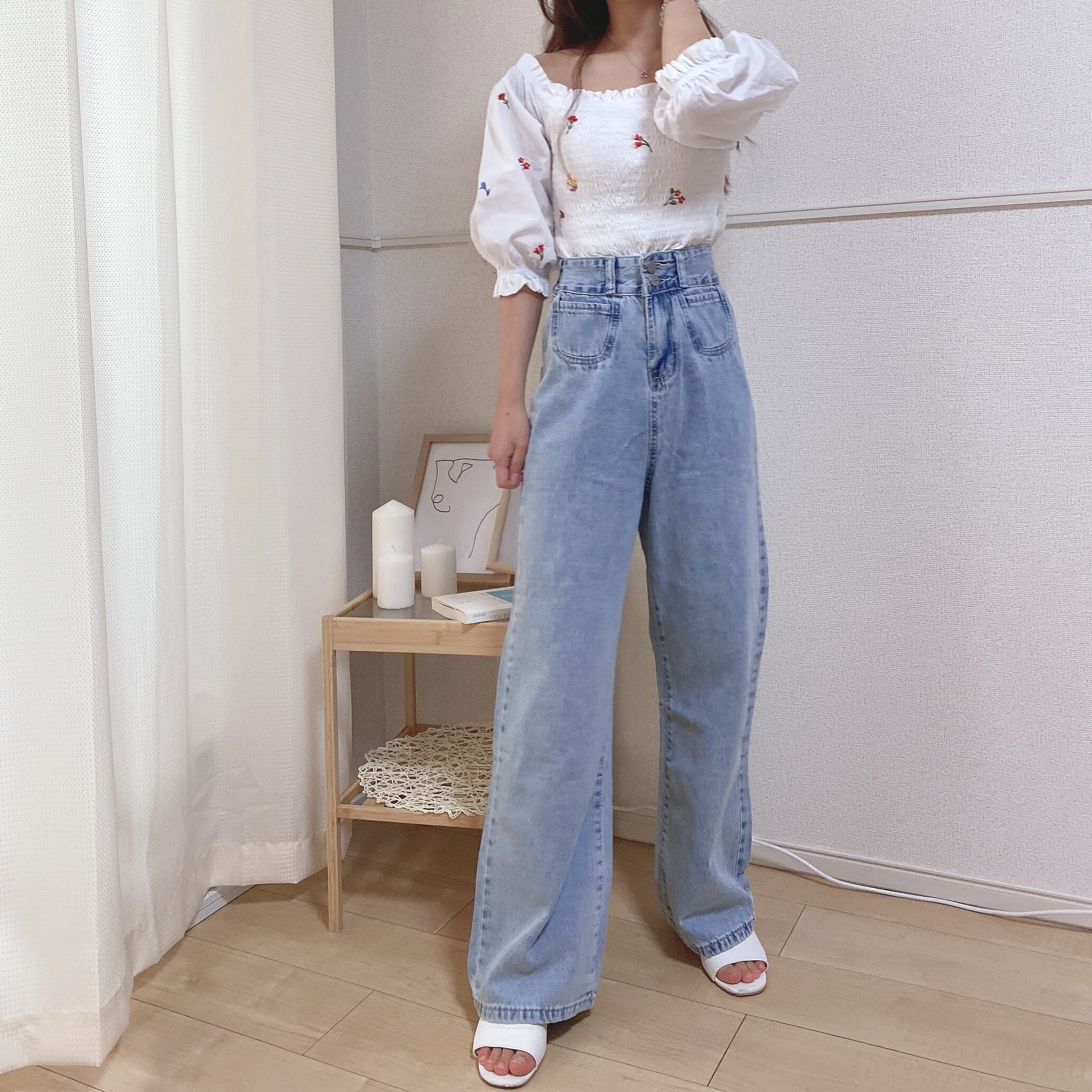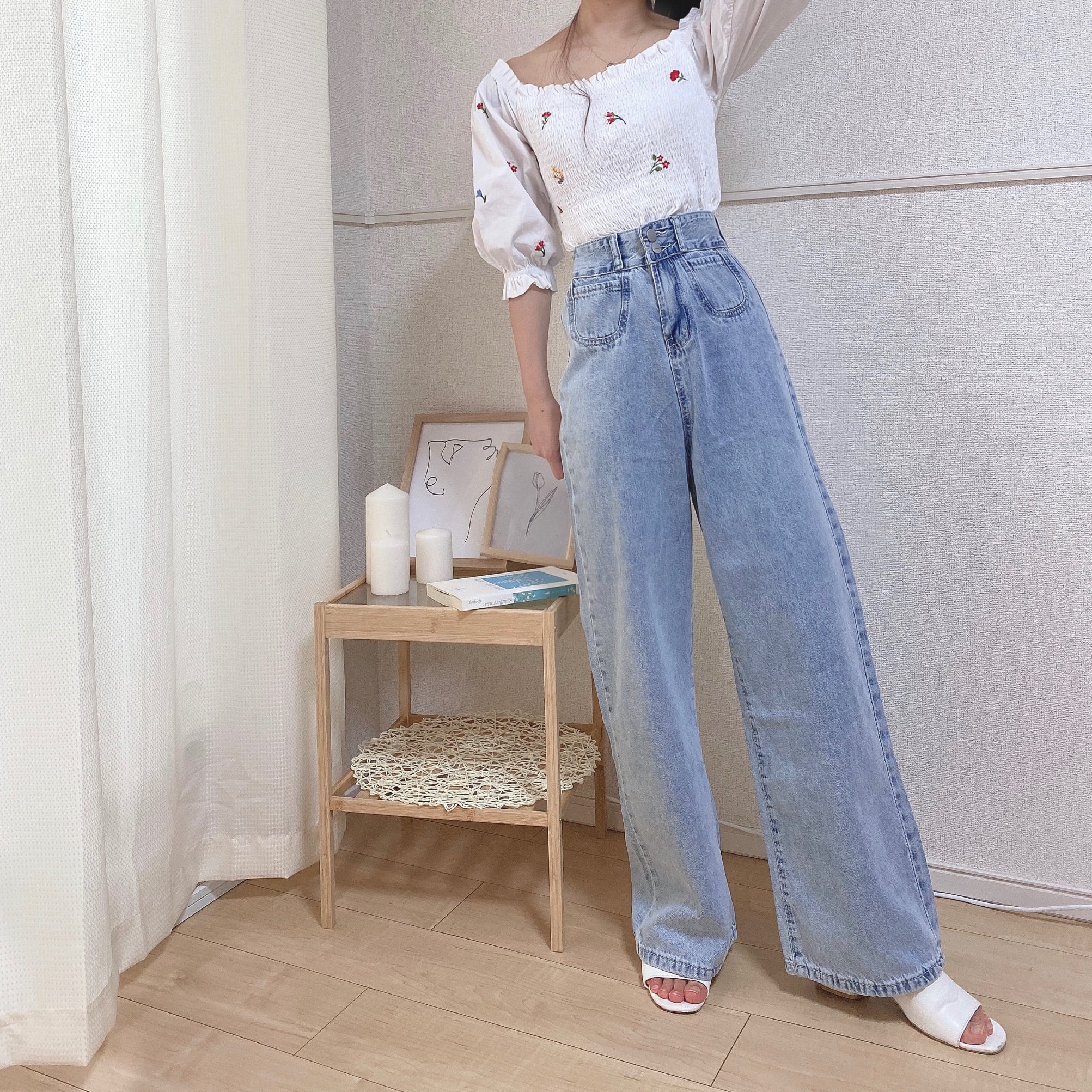 《 即納可能 》ハイウエストワイドデニム 《韓国ファッション オルチャン》