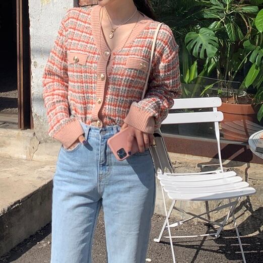 ツイードオーバーニットカーディガン 《韓国ファッション オルチャン》
