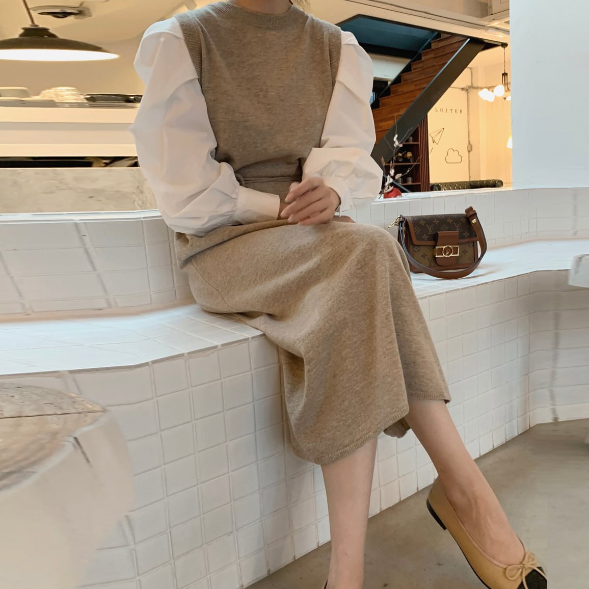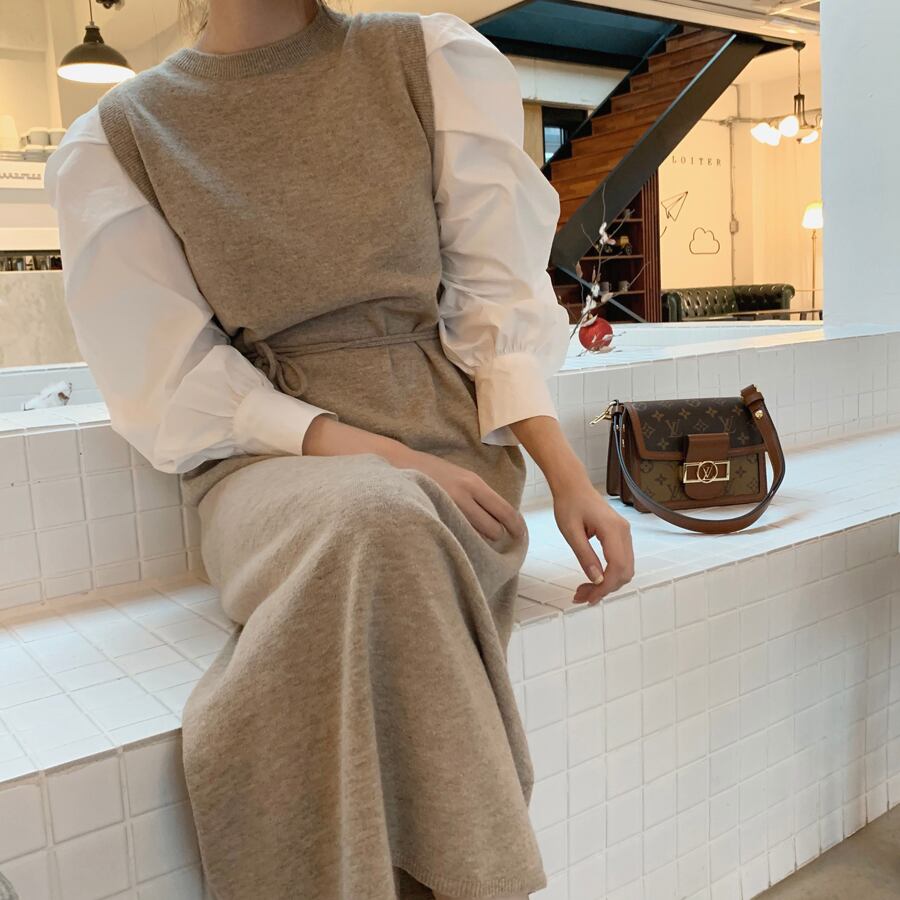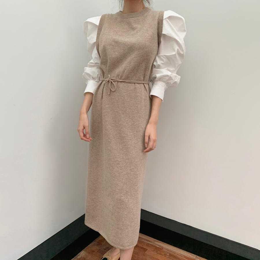 《即納》シャツバルーンスリーブワンピース 《韓国ファッション オルチャン》